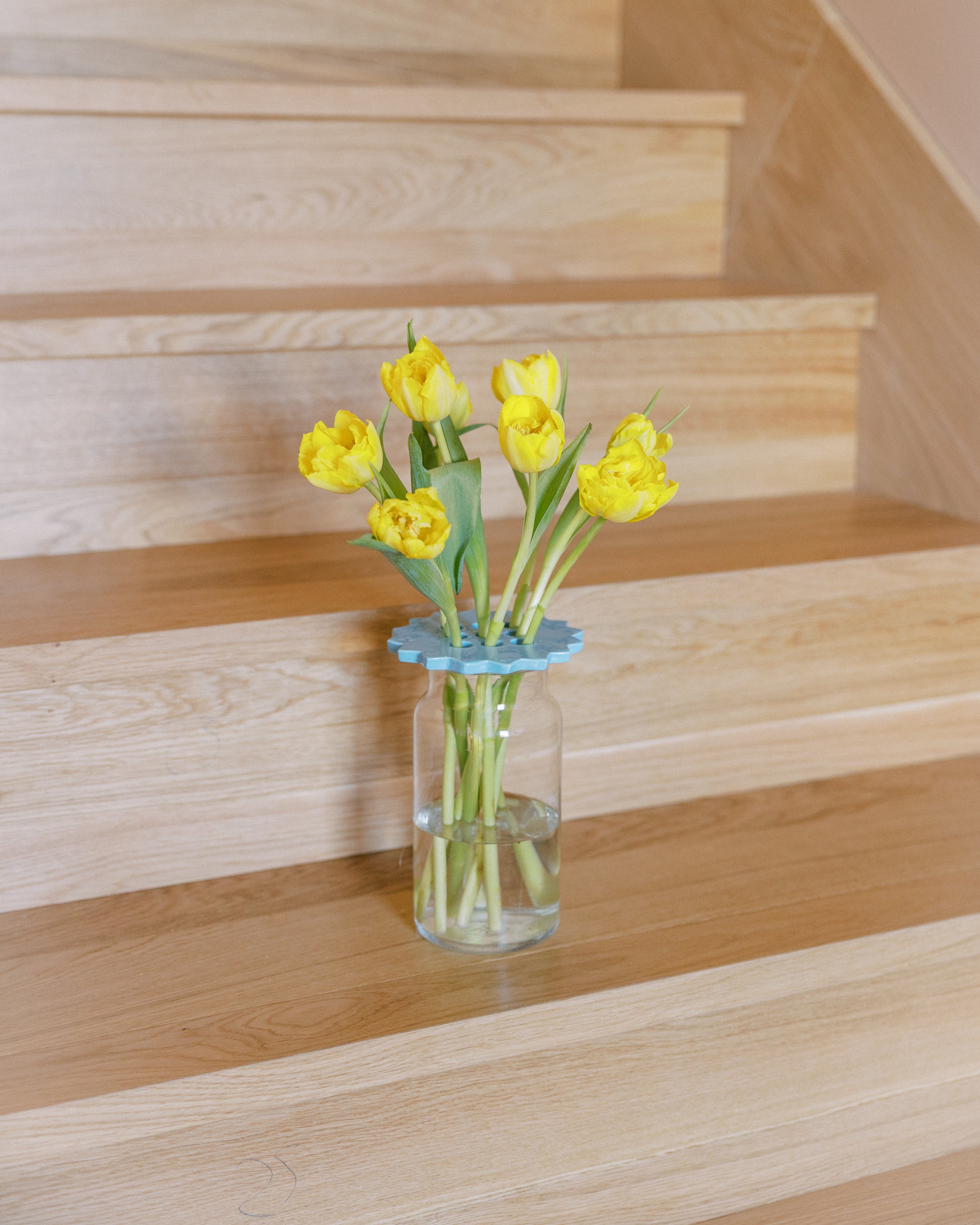 A decorative ceramic collar for your floral arrangement! Plus, the flower frog helps to add structure to floppy flowers so they stand up tall instead of falling to the side of the vase.
