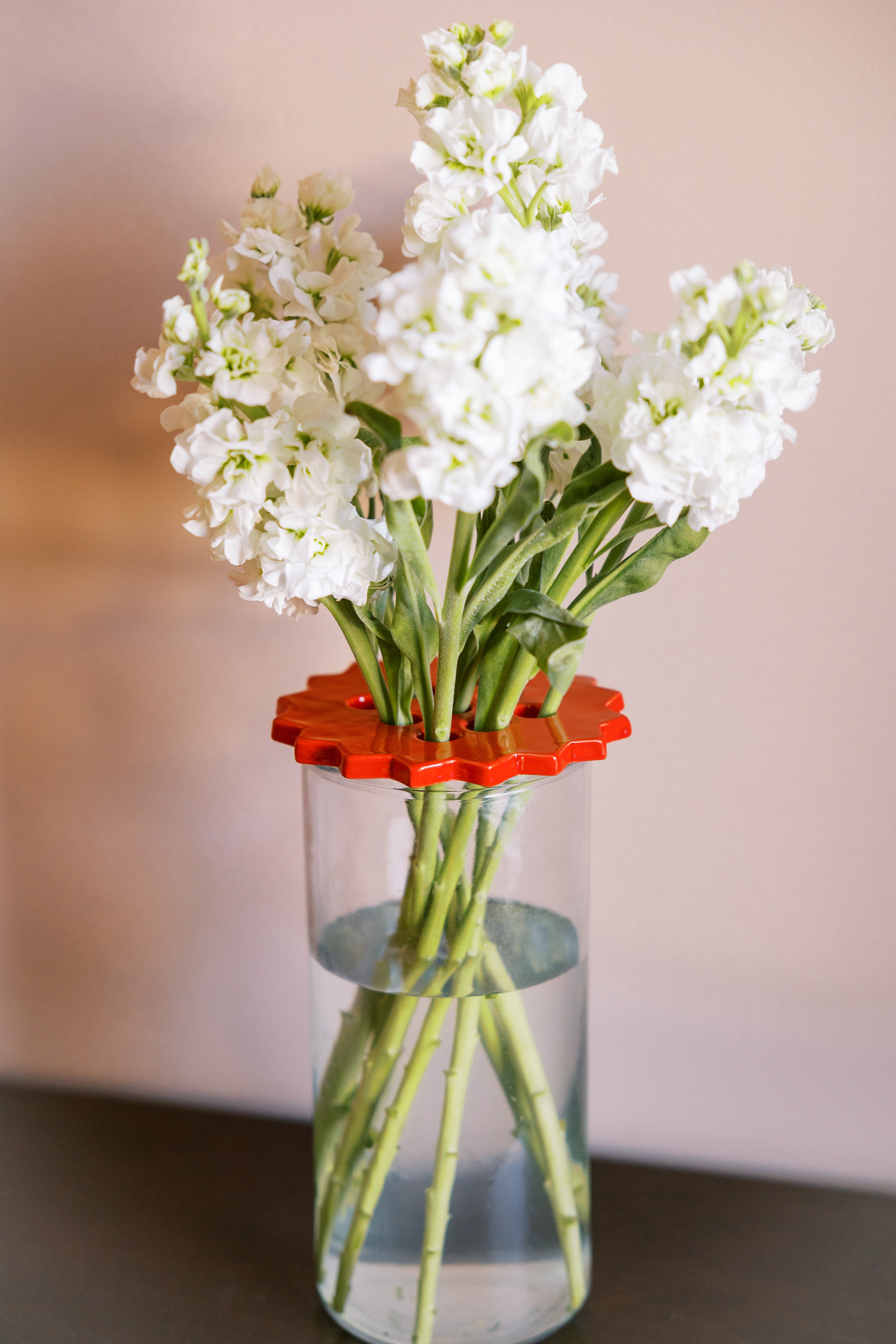 A decorative ceramic collar for your floral arrangement! Plus, the flower frog helps to add structure to floppy flowers so they stand up tall instead of falling to the side of the vase.