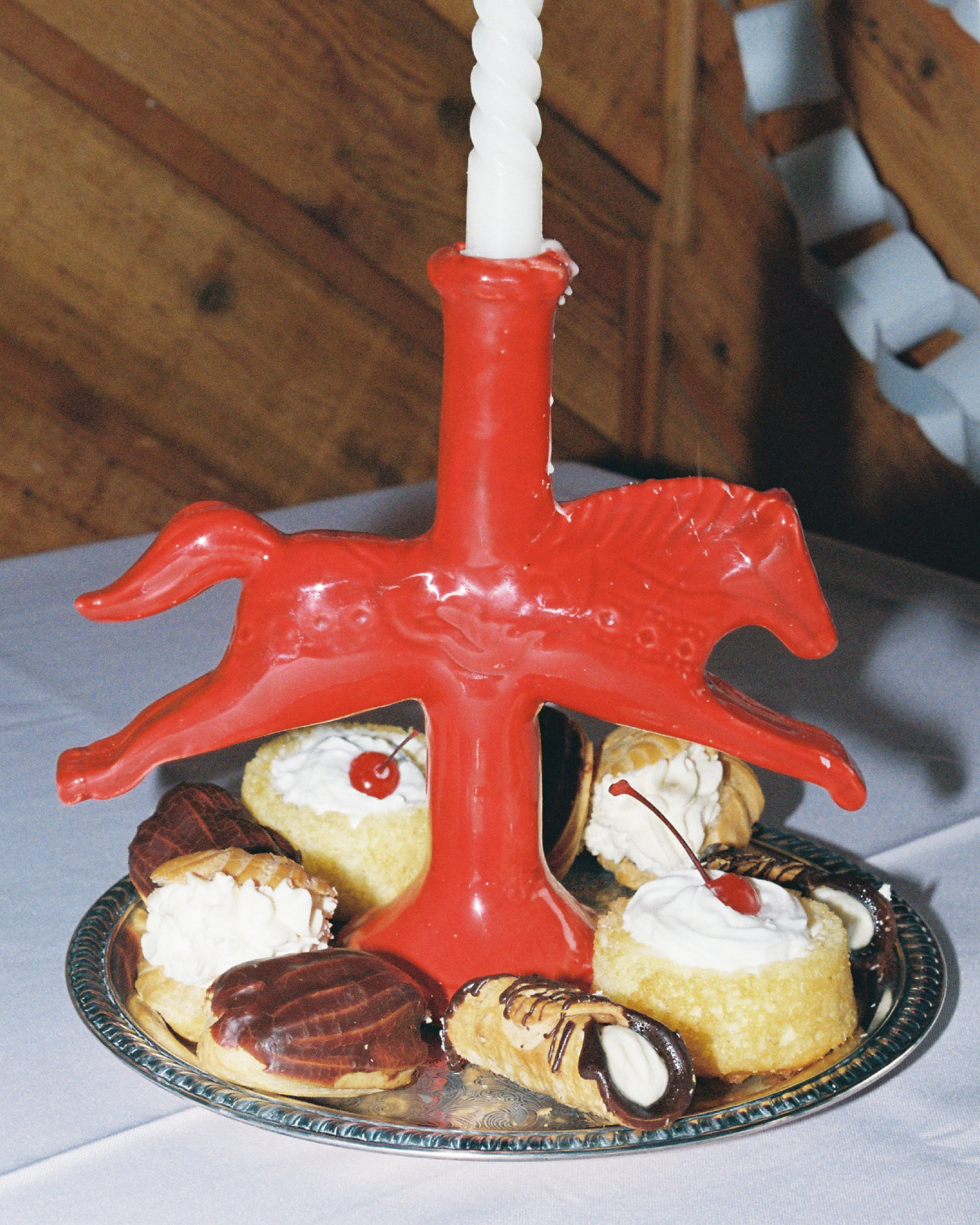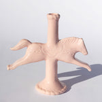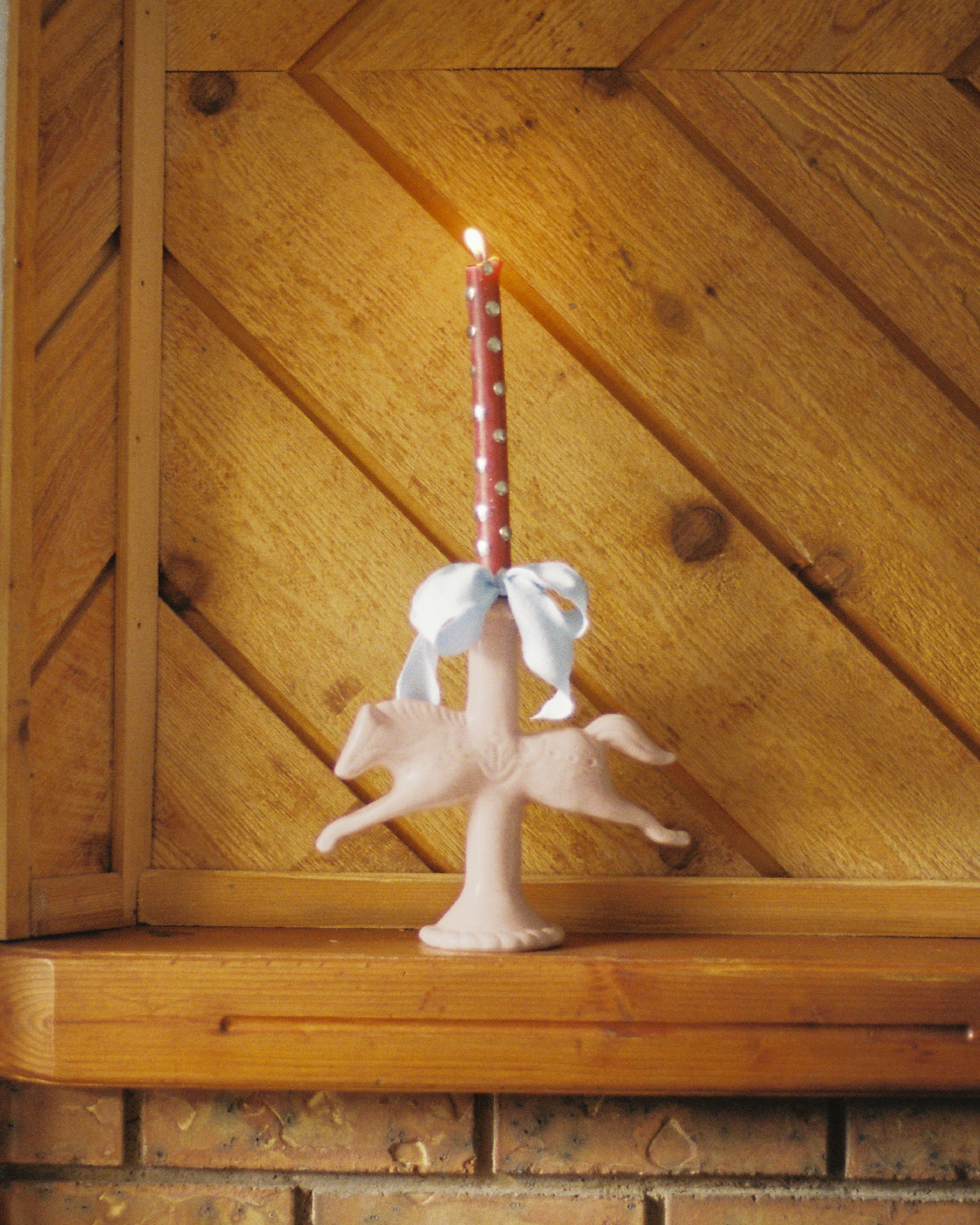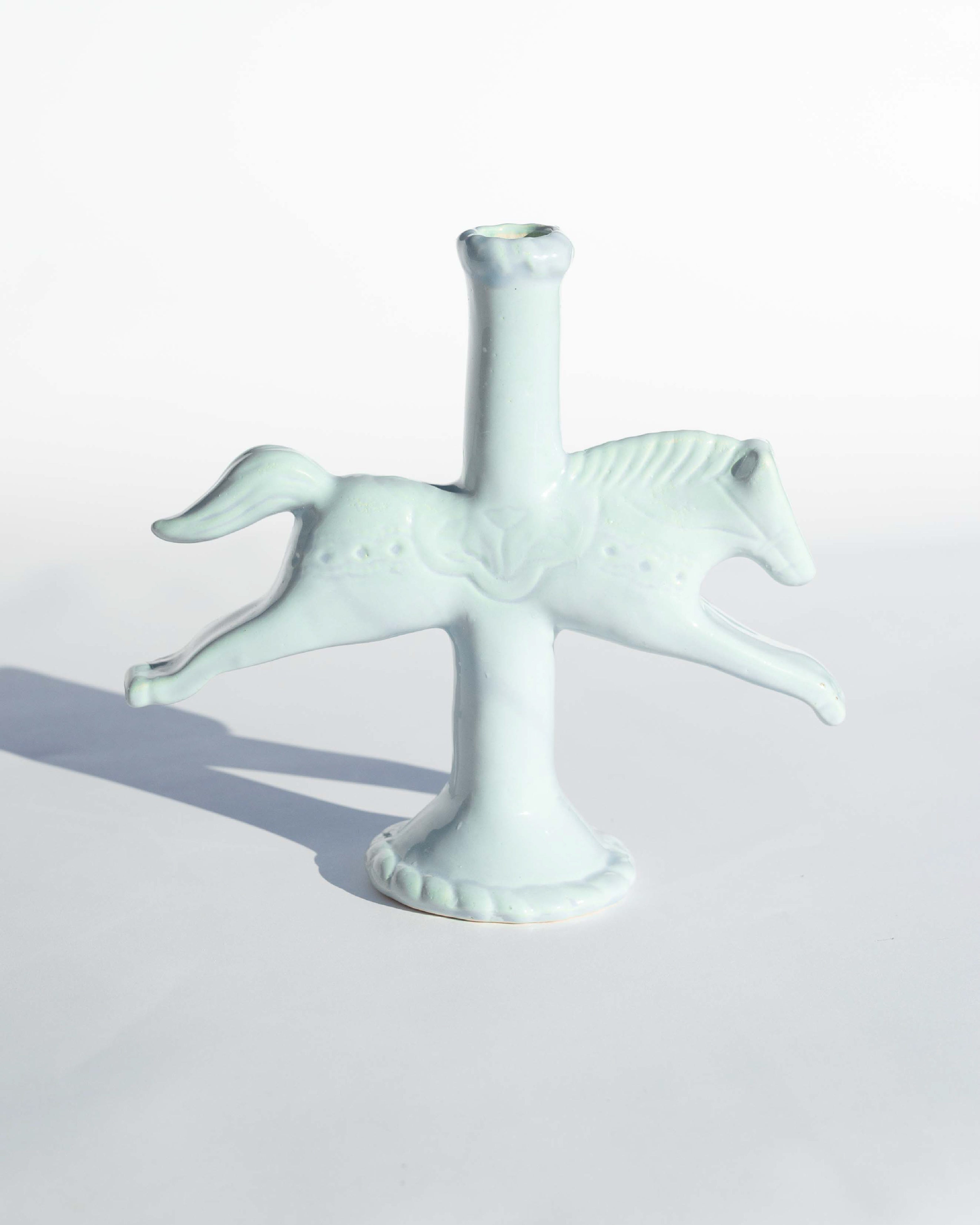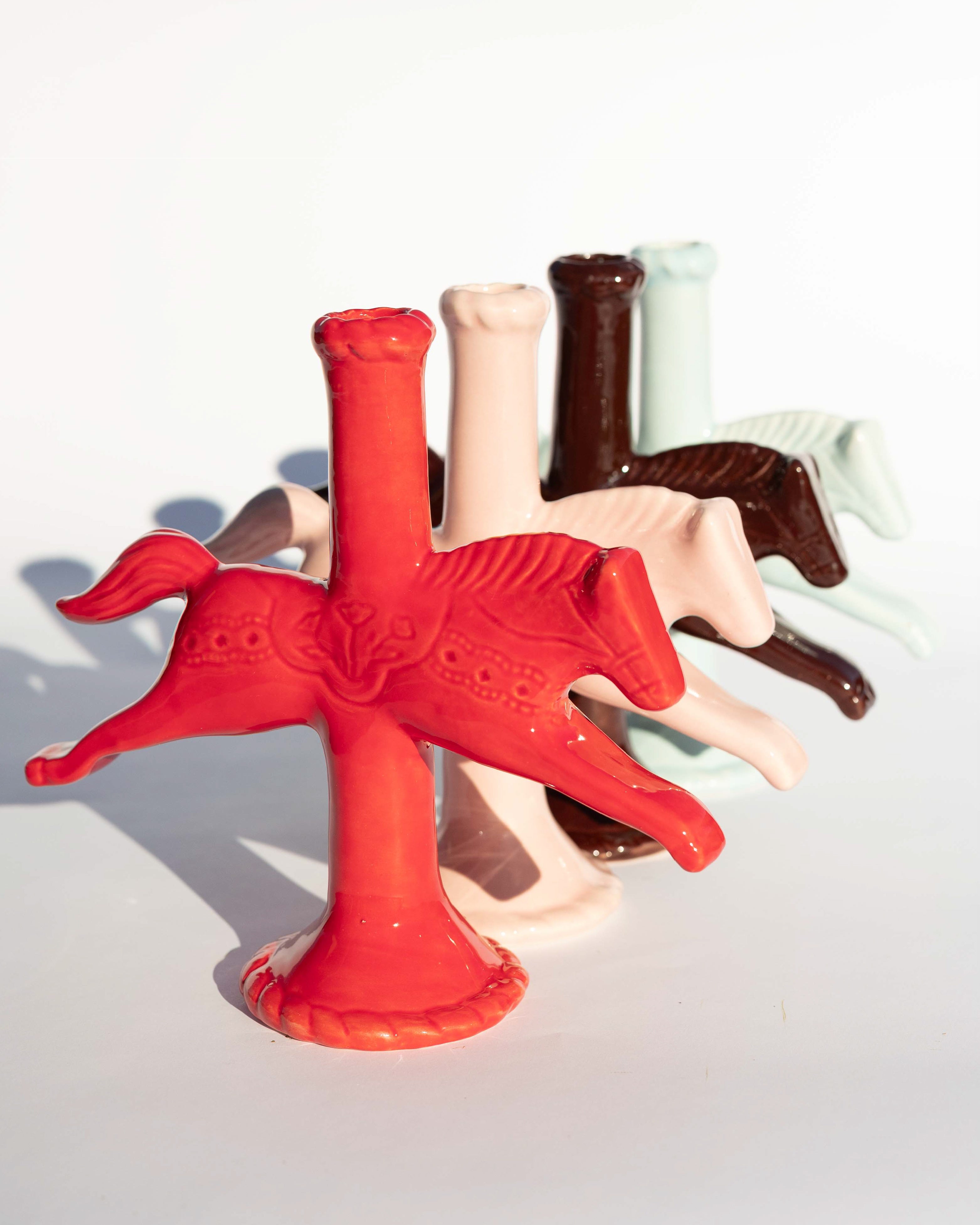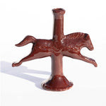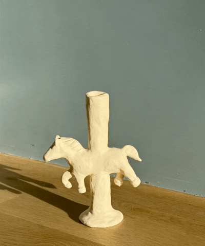 At this stage, more clay was added to turn the horse into a candlestick holder. in addition to hand-carved details that reference Swedish Dala Horses.