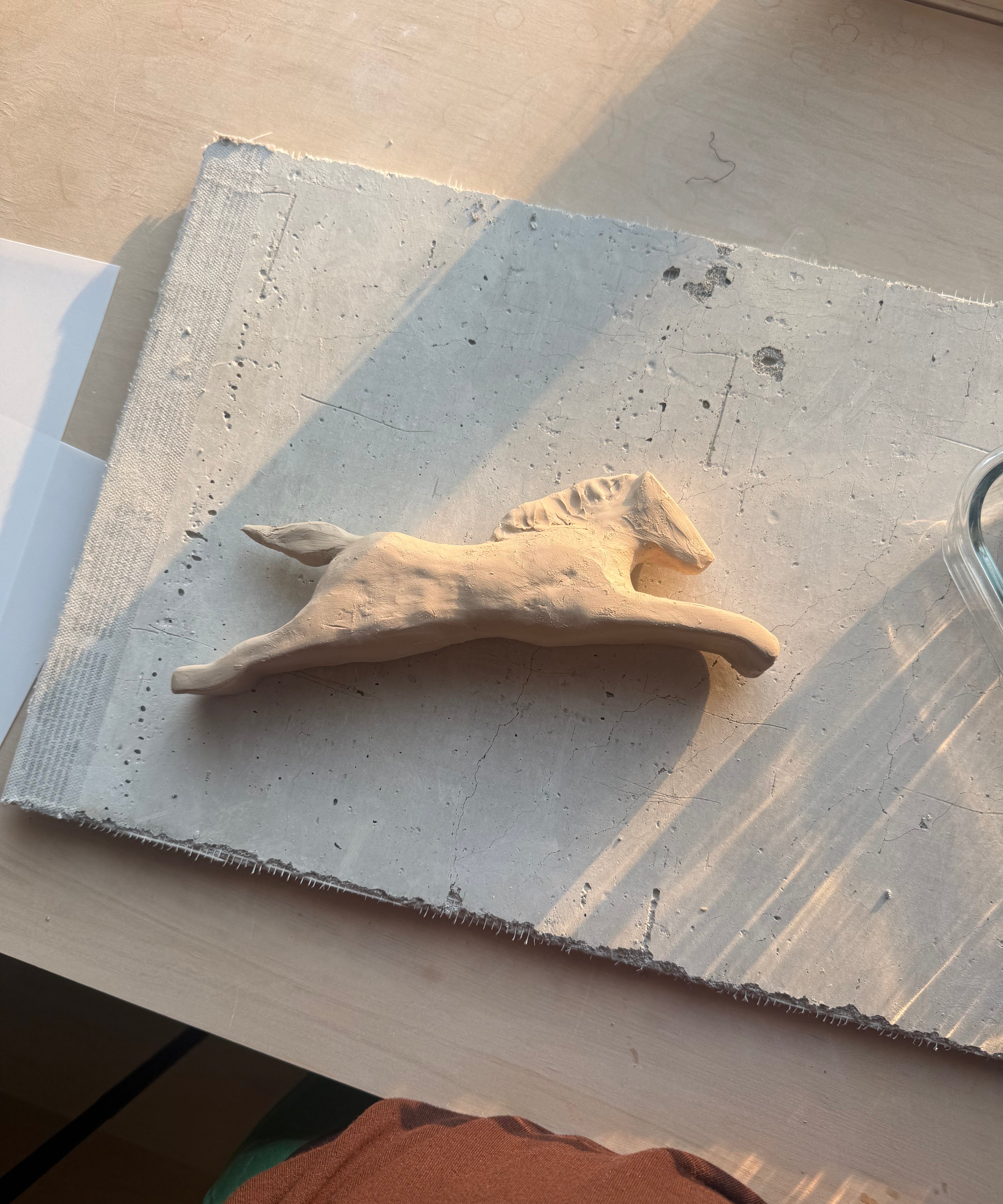 Starting with a raw hunk of clay, the basic form of the horse was sculpted by hand.