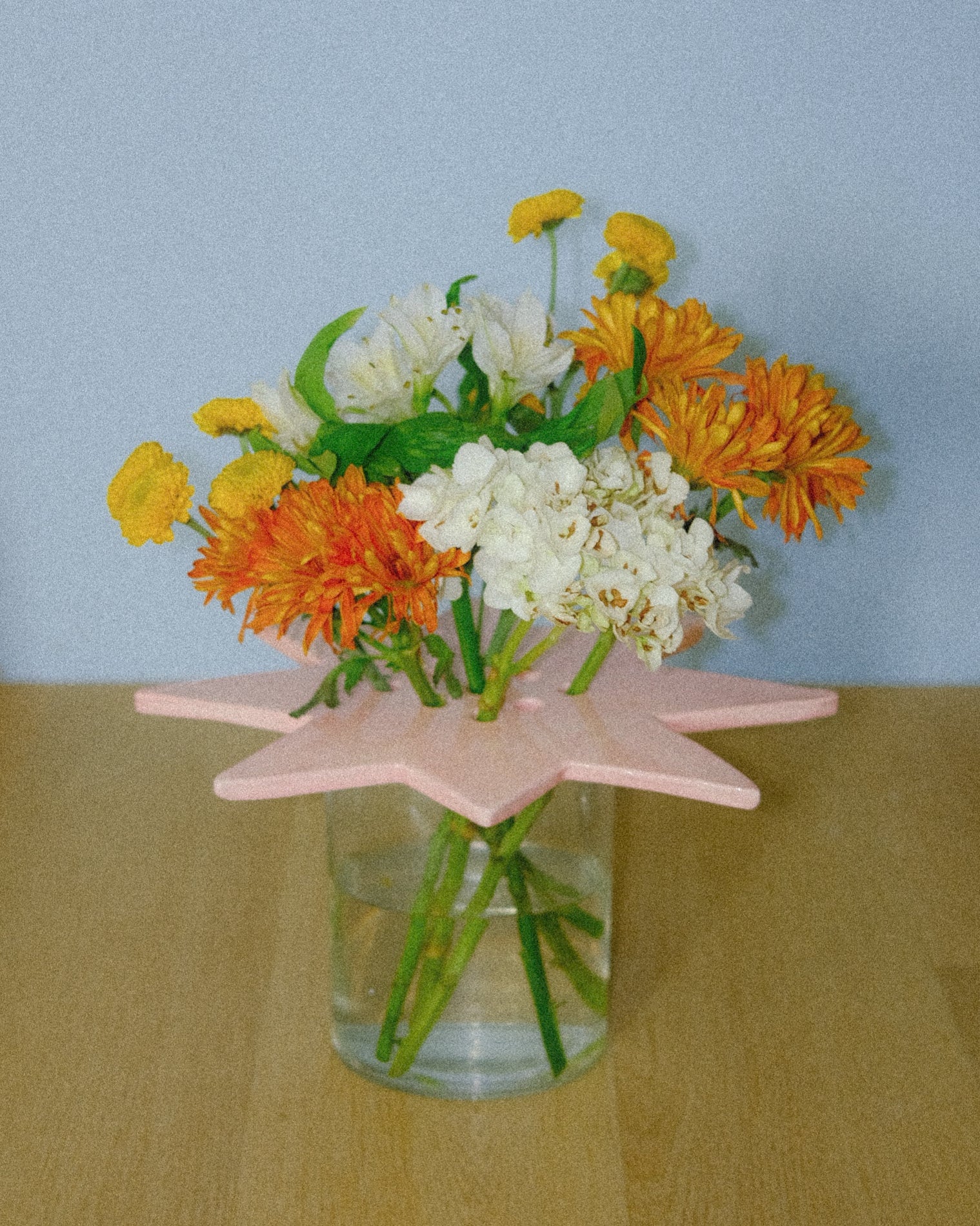 A decorative ceramic collar for your floral arrangement! Plus, the flower frog helps to add structure to floppy flowers so they stand up tall instead of falling to the side of the vase. Perfect for transforming grocery store bouquets into floral masterpieces or for an easy house-warming gift.