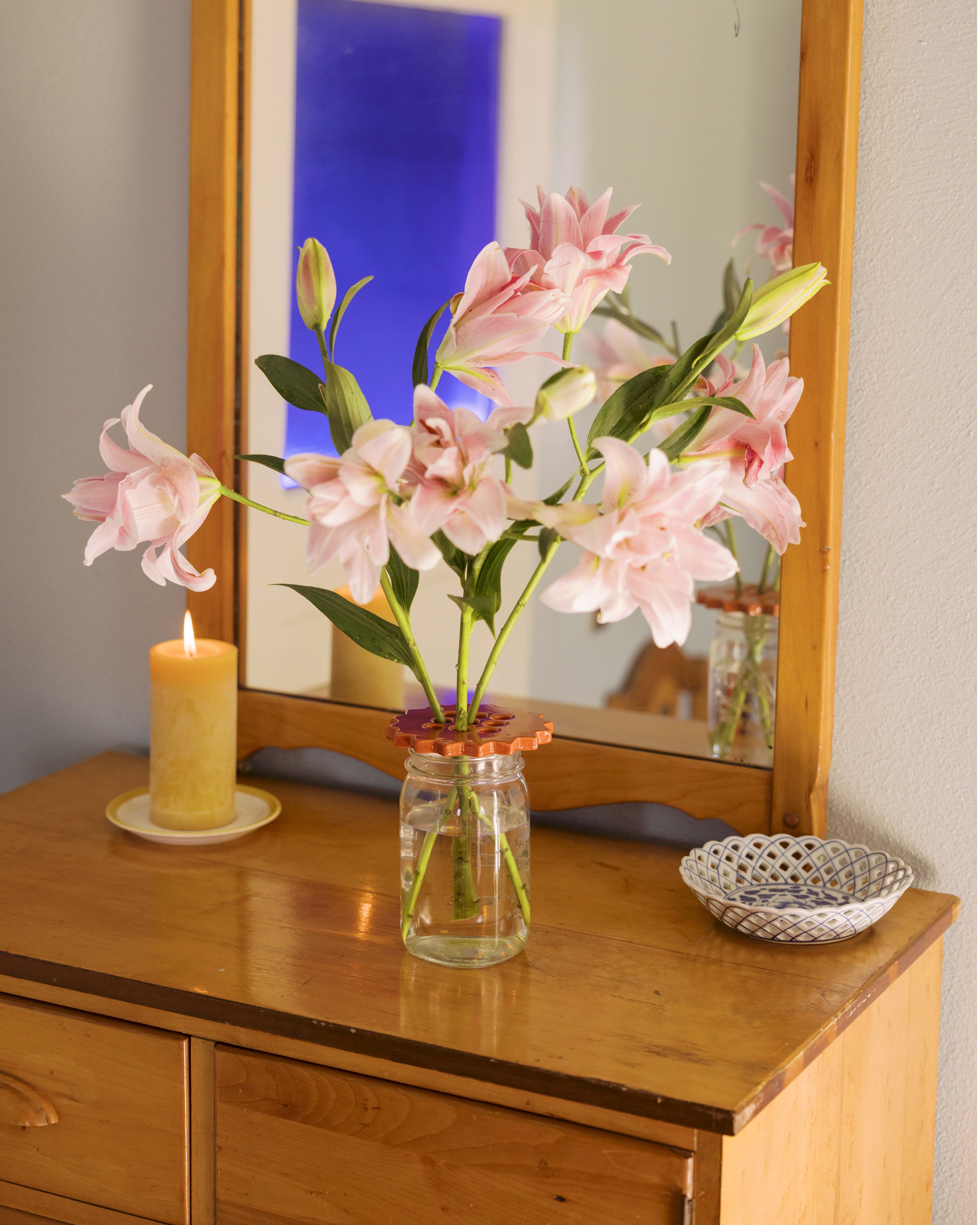 Place a standard taper candle into the opening and press gently until it feels secure. We recommend placing your holder on a stable, heat-safe surface and keeping burning candles attended. These are perfect for dining tables, mantels, and shelves to everyday spaces.